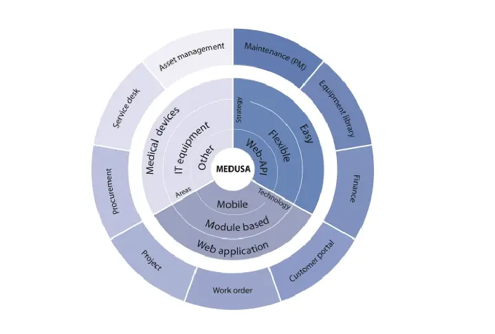 Medusa یه نرم‌افزار مدیریت دارایی‌های سازمانی (EAM) هست، که مختص حوزه بهداشت و درمان طراحی شده. این نرم‌افزار برای مدیریت تجهیزات پزشکی و نگهداری کامپیوتری به کار میاد و تمام مراحل عمر دستگاه‌ها، از خرید تا نگهداری رو پوشش می‌ده.
