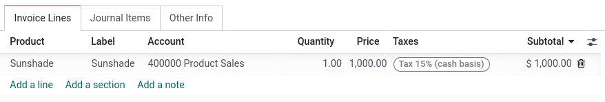 برای نشان دادن تأثیر مالیاتهای پایه نقدی بر تراکنشهای حسابداری، بیایید مثالی از فروش محصولی با قیمت ۱۰۰۰ دلار و مالیات پایه نقدی ۱۵٪ بیاوریم.