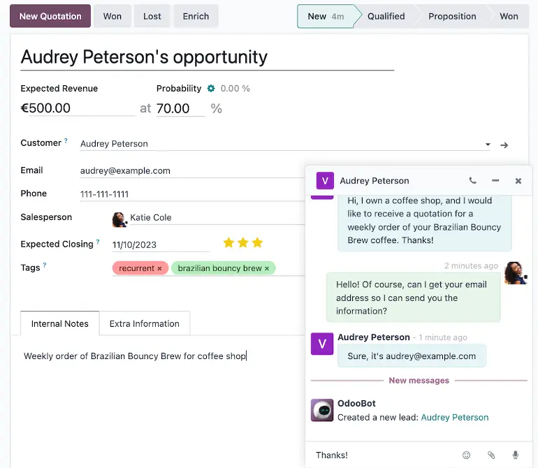 به Chatbot اودوو ، عضو جدید ، تیم شما خوش اومدی