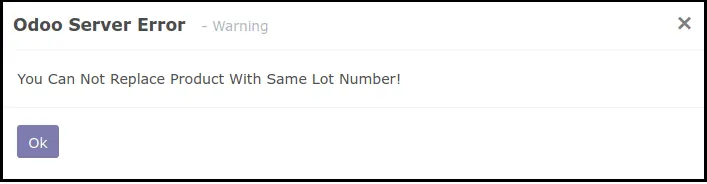 برای جایگزینی محصولات باید همان محصول را با شماره سریال متفاوت انتخاب کنید، اگر محصول یکسان باشد اخطار نمایش داده می شود.