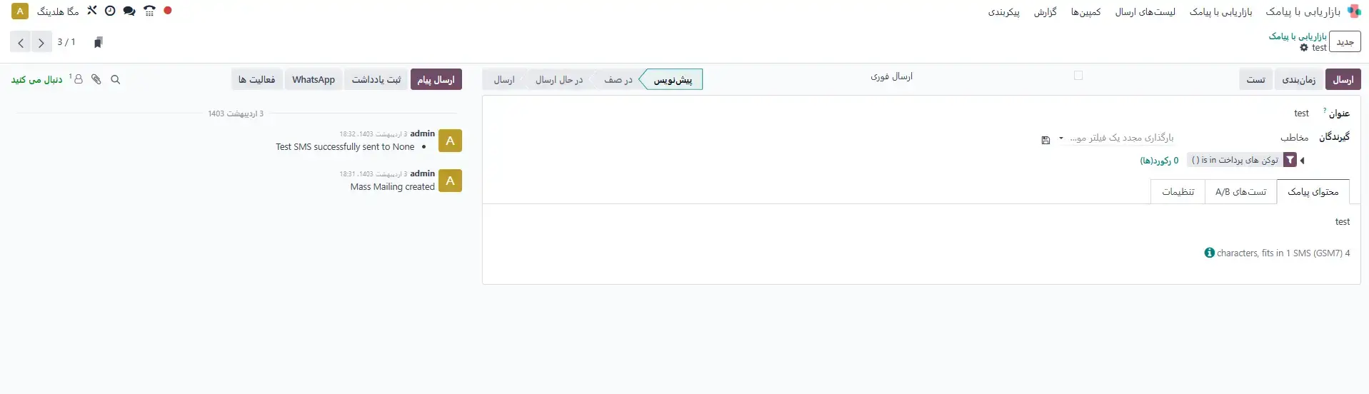 فقط کمپینهای خودت رو تنظیم کن و زمان ارسال اونها را مشخص کن. اودوو بهطور خودکار پیامکها را ارسال میکنه و نیازی نیست که آنلاین باشی...