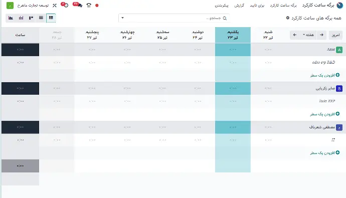 ماژول جدول زمانی اودوو (Odoo Timesheets) به تیم شما امکان ردیابی و تایید ساعات قابلصورتحساب را فراهم میکند، زمان صرف شده بر روی وظایف را تصویب میکند، و فرآیند صورتحسابزنی خدمات شما را ساده میکند. همه اینها در یک رابط کاربری بدون مشکل.
